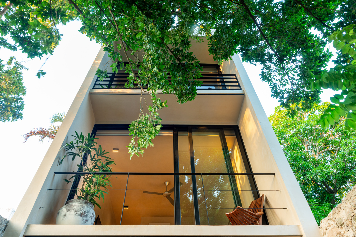 These three patios work together to enable end-to-end cross ventilation, allowing the house to breathe naturally and respond intelligently to the tropical climate. The presence of mature vegetation, especially in the rear garden, further regulates solar exposure and provides shade to key façades, allowing the integration of large operable windows and terraces that visually and physically connect the interiors to the outdoors.
