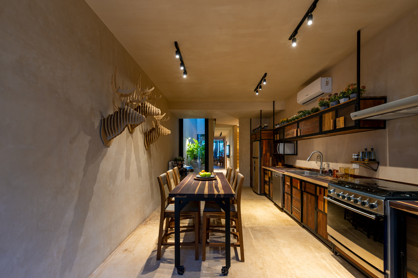 Casa Tres Patios is a compact yet spatially rich architectural intervention located in the historic center of Mérida, Yucatán. Developed on a long and narrow urban lot measuring just 3.6 meters wide and 40 meters deep, the project revitalizes a deteriorated colonial-era structure into a low-cost, high-comfort vacation rental home. Designed with both user experience and operational efficiency in mind, the house prioritizes passive design strategies, low maintenance, and reduced energy consumption—key factors for a property intended for short-term rental use in a hot, humid climate.