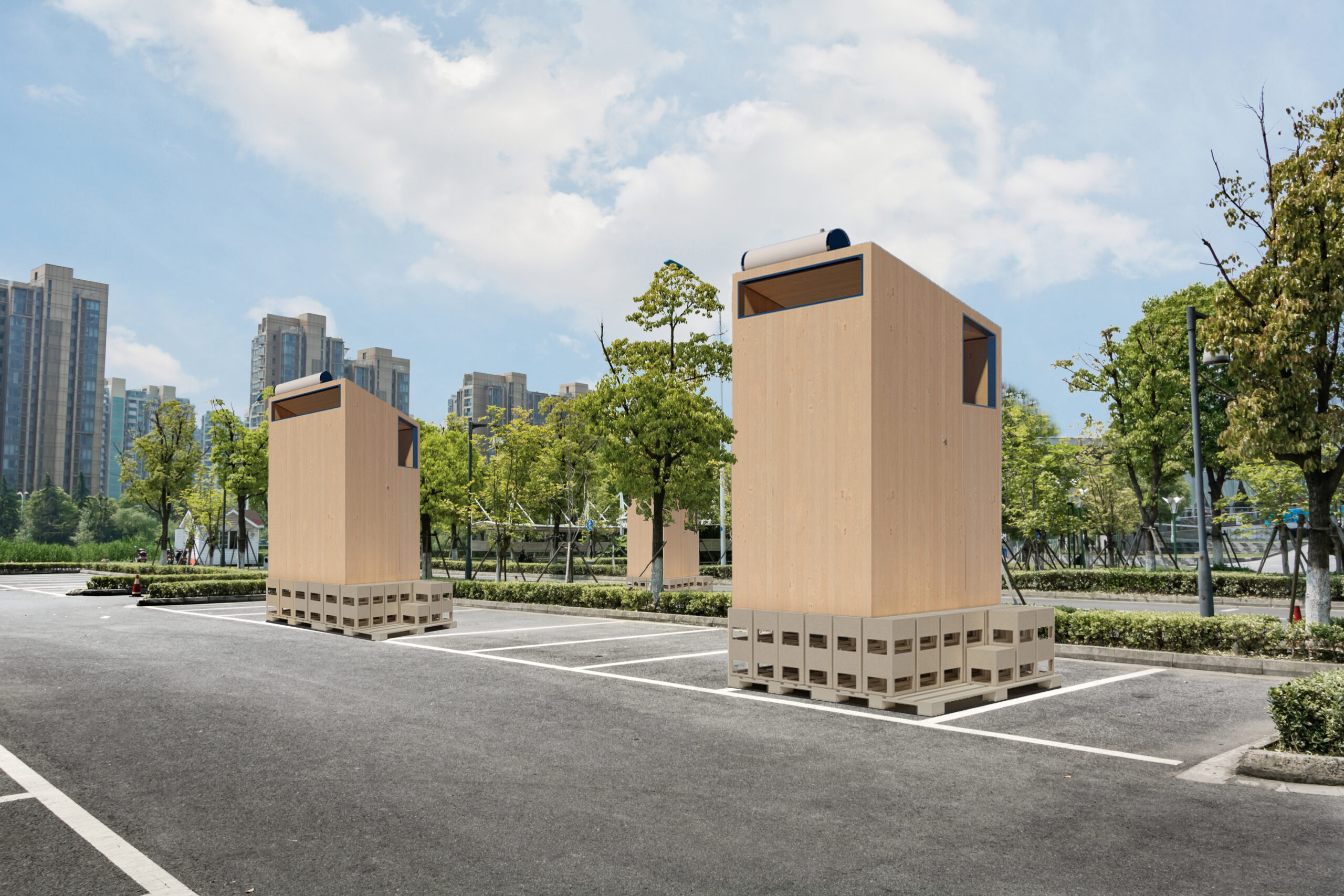 The pavilion consists of twelve independent modules, each measuring approximately 7 square meters. Constructed from certified sustainable wood and innovative poly-aluminium foil—sourced from over a million post-consumer recycled carton packs—these modules demonstrate an environmentally responsible approach to emergency housing. The interior walls are coated with hospital-grade antibacterial acrylic paint, ensuring hygienic conditions critical for healthcare environments.