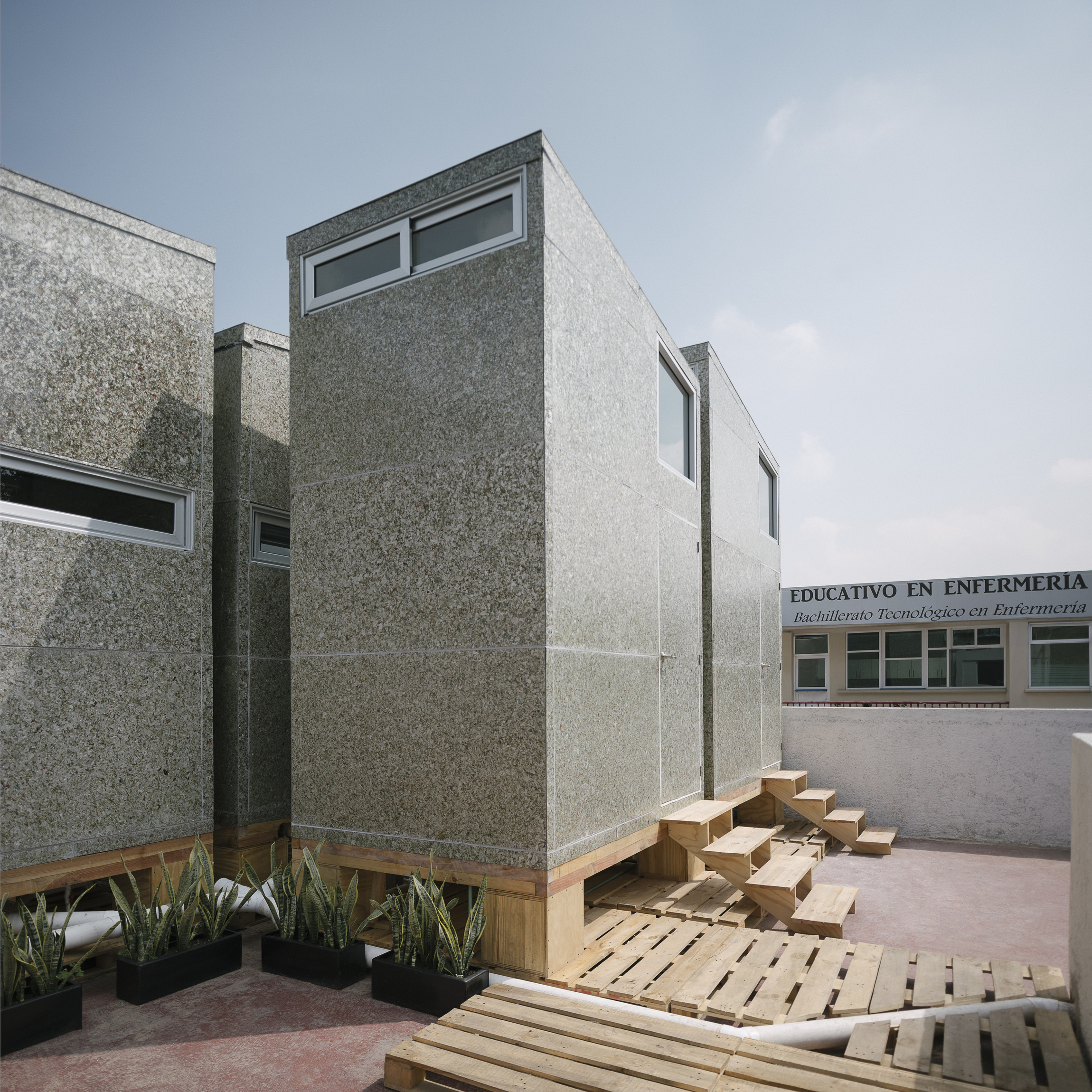 Solidarity is a fundamental value that should guide every professional committed to making a positive impact on society. The Temporary Housing Pavilion for Healthcare Workers embodies this principle through its compassionate and practical design, created by Revolution as a non-profit emergency architecture initiative. This project was conceived to provide Mexican Red Cross staff with a safe, comfortable, and private space to rest and refresh within their workplace during the height of the COVID-19 pandemic—eliminating the need to return home and risk exposing their families to the virus.