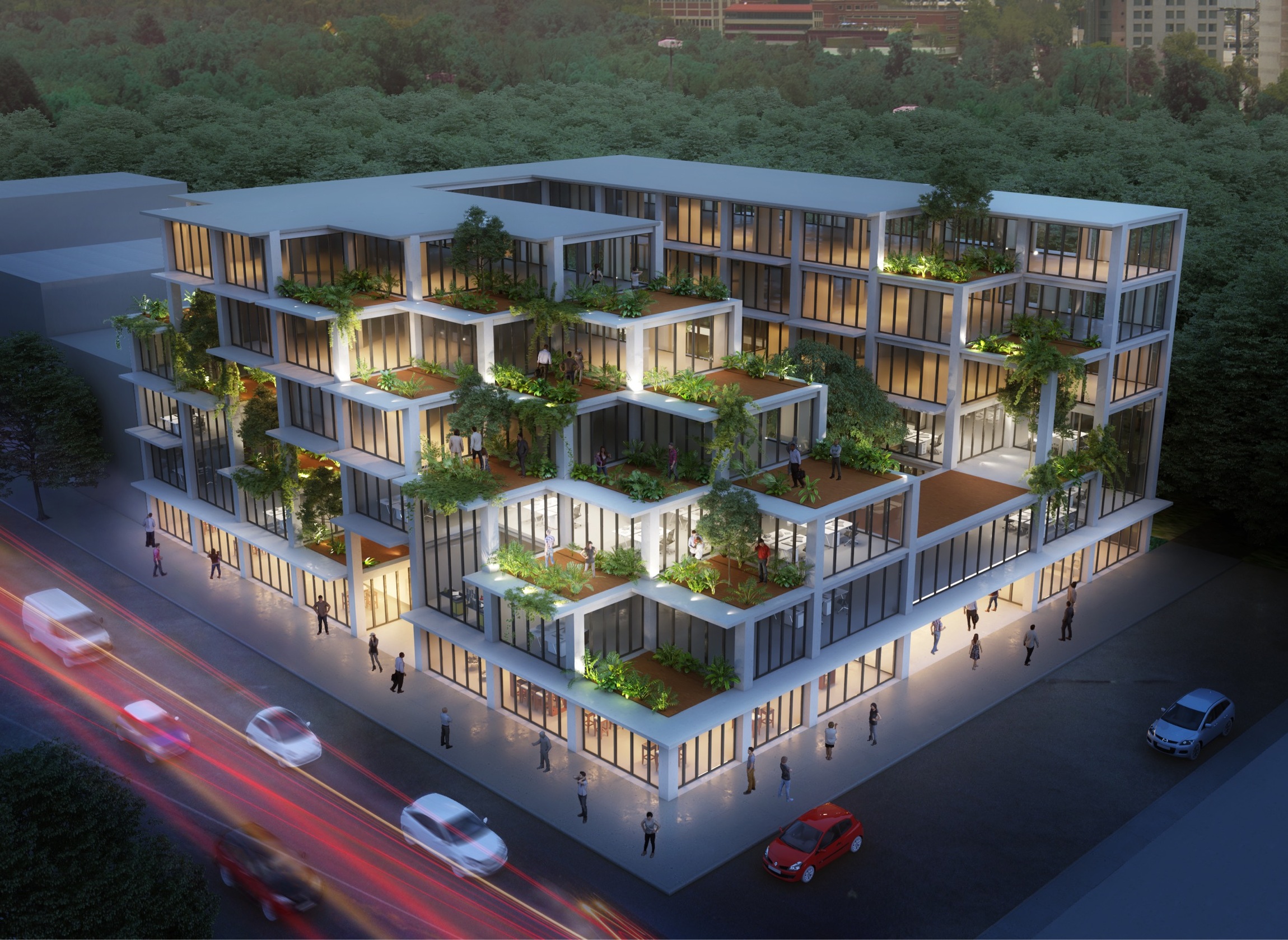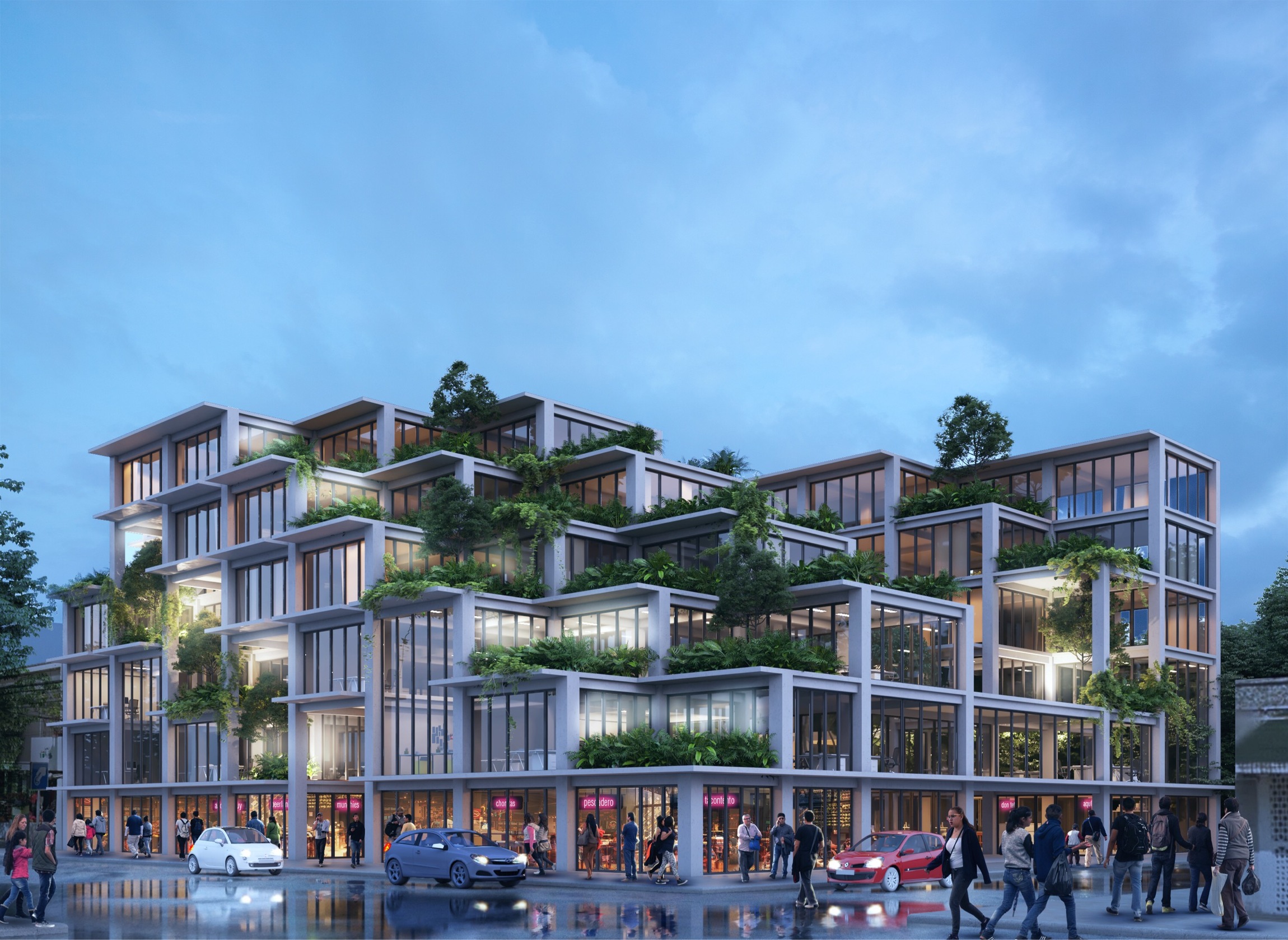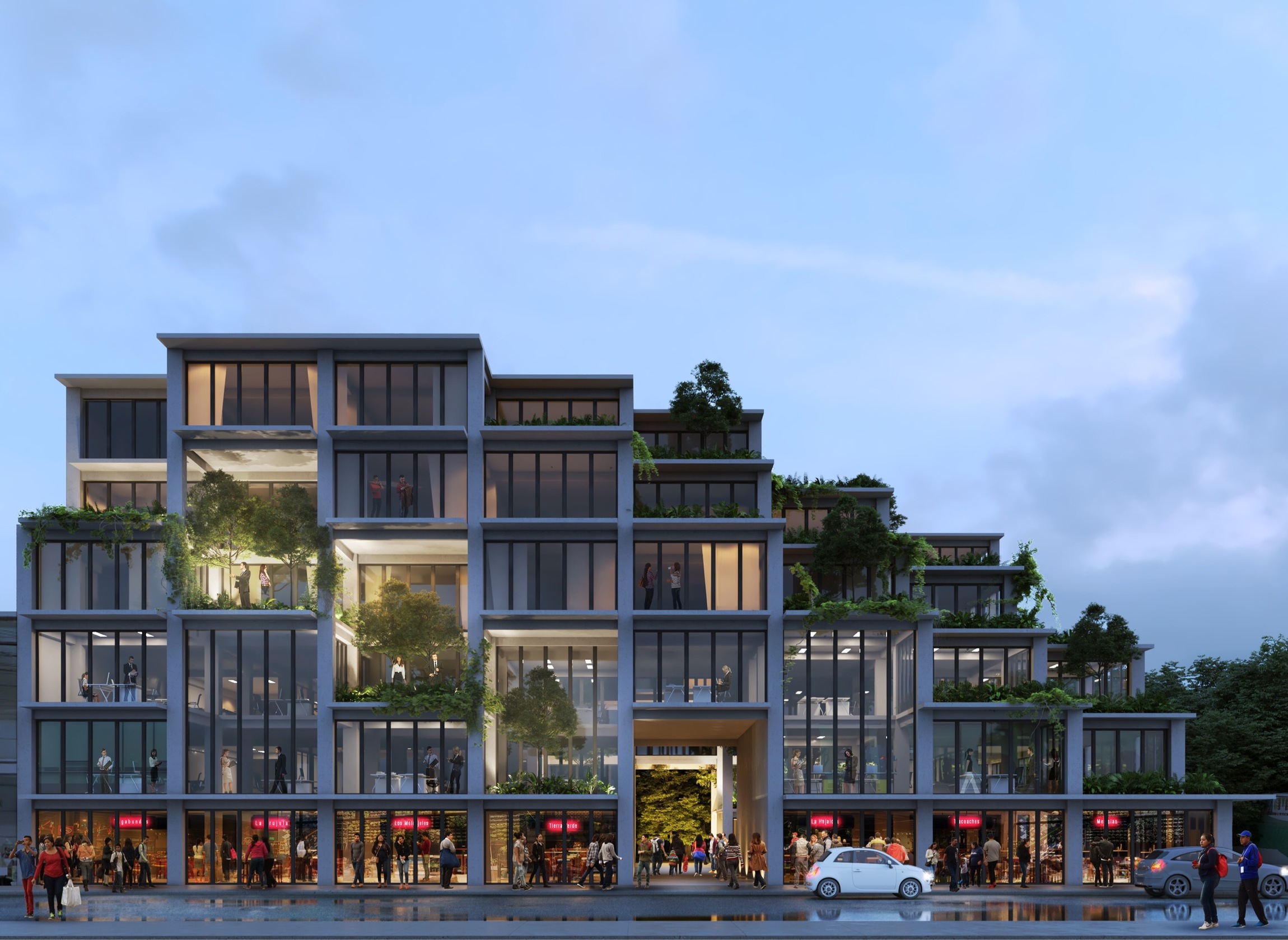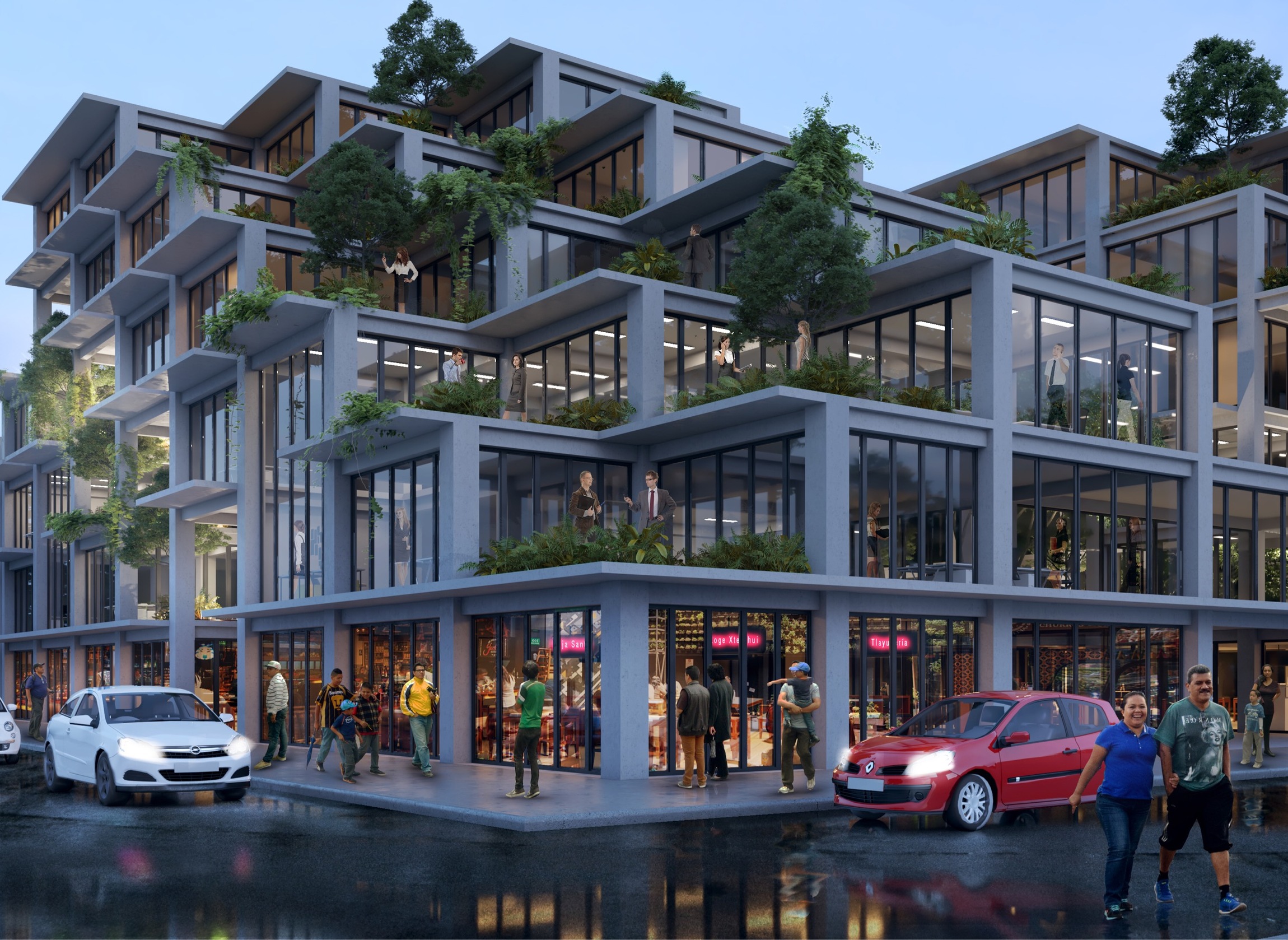 The resulting program is a vertically layered, mixed-use development. The ground level is animated with retail shops and restaurants, engaging directly with the street’s active pedestrian life. The middle volume, facing the street, houses offices, catering to entrepreneurs and small businesses who benefit from the central location. At the rear of the site, we introduced a residential component, offering a variety of apartment typologies—from compact studios to two-bedroom units—designed to attract young professionals seeking to live in one of the city’s most dynamic neighborhoods.