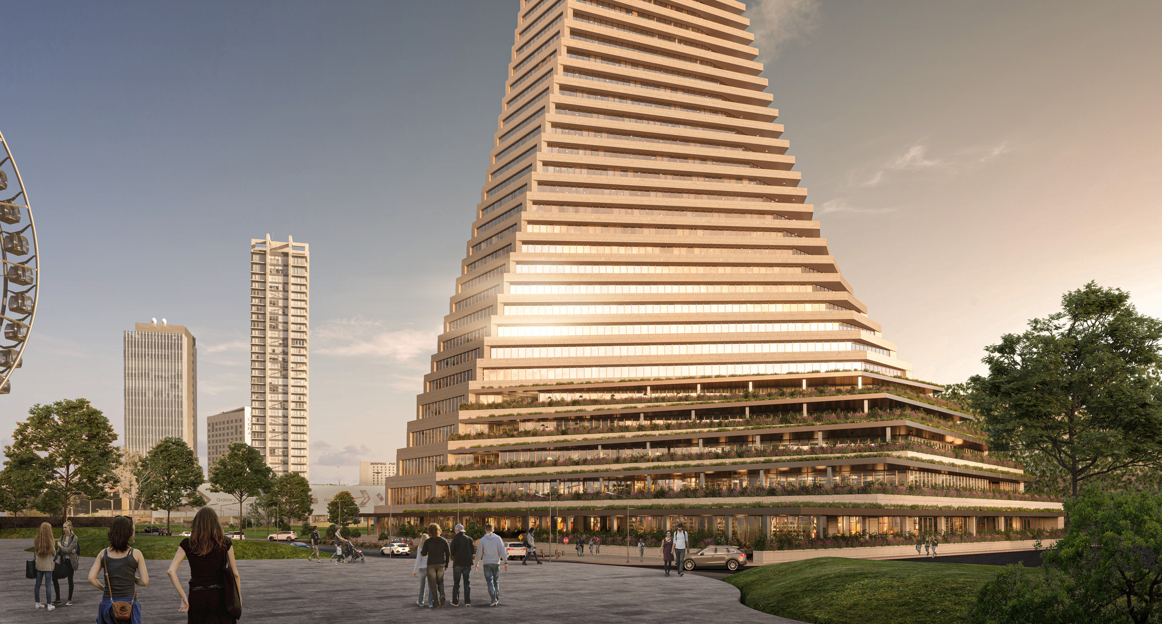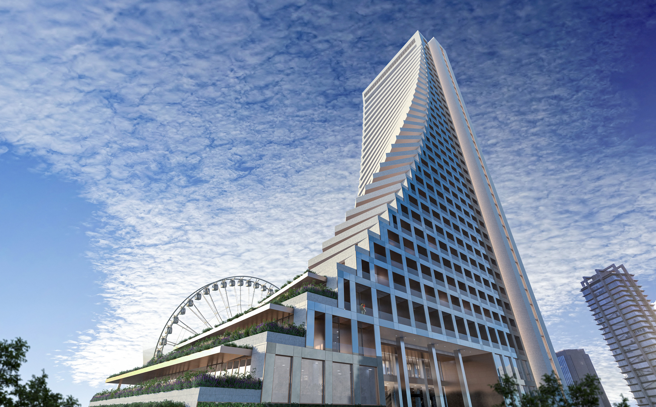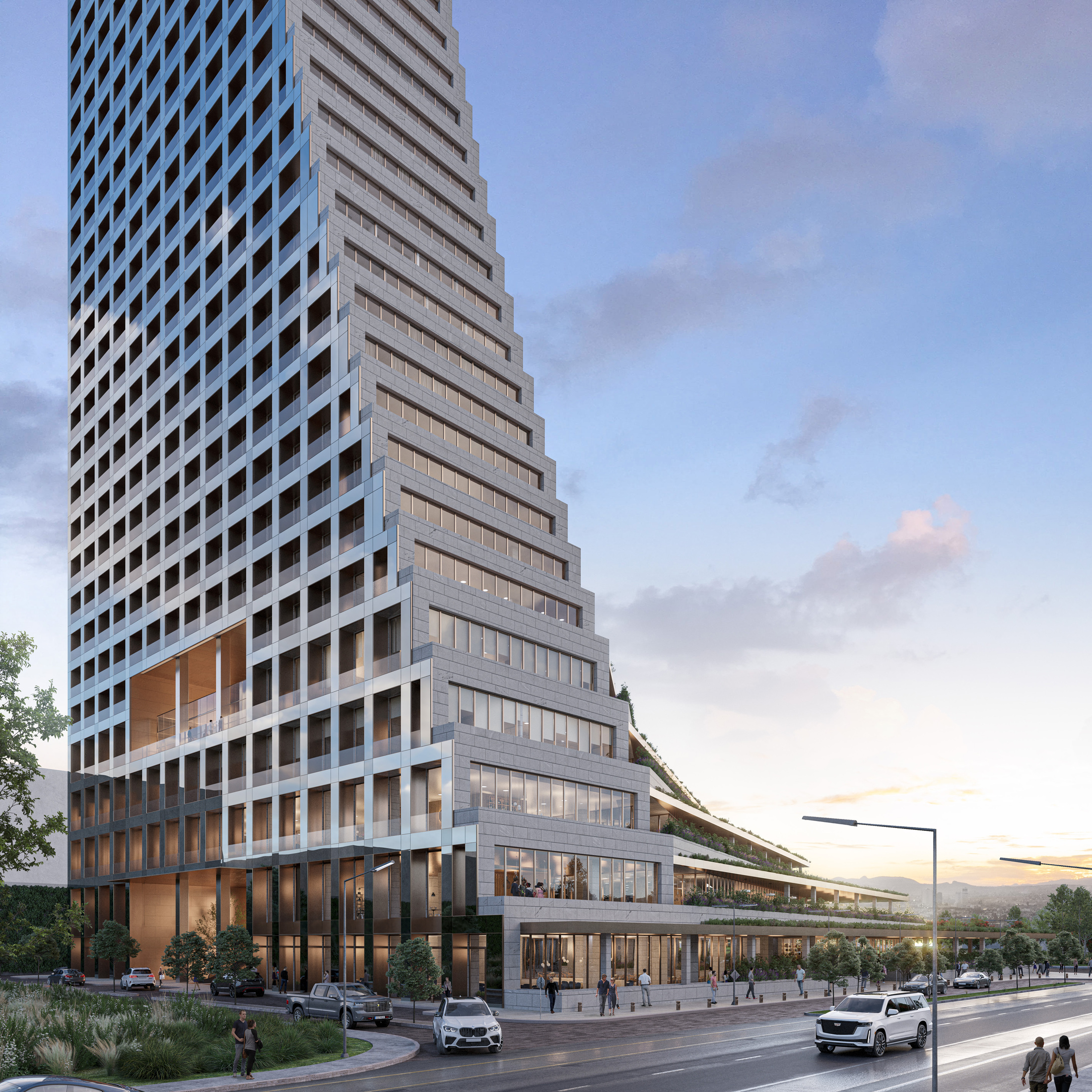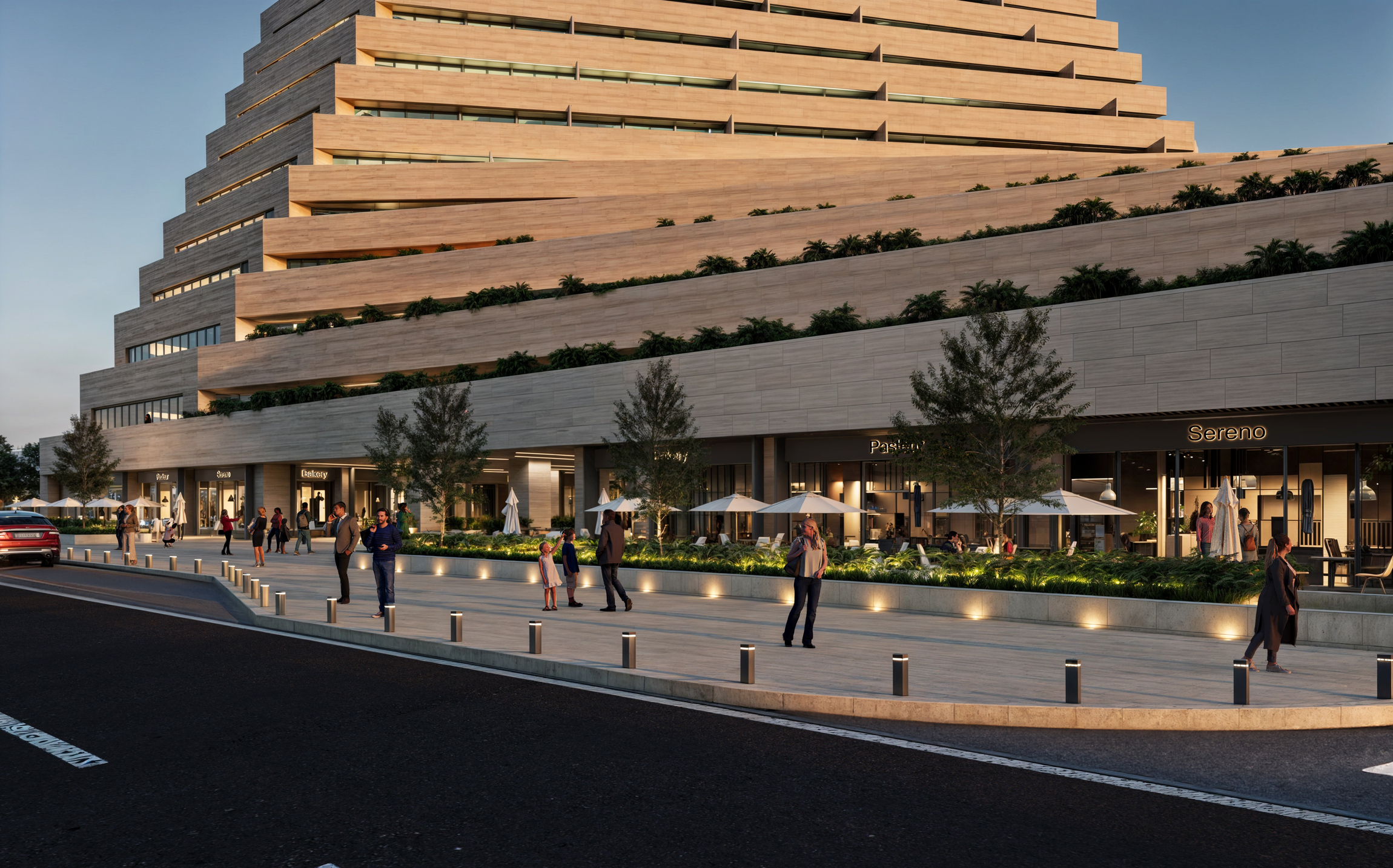 To fulfill this vision, we challenged the conventional mixed-use typology, in which a commercial podium and residential tower exist as separate, often disjointed volumes. Instead, we revisited the early skyscraper model of New York, where the entire program is expressed within a unified vertical volume. By applying a series of progressive setbacks—traditionally used to allow sunlight to reach the street and preserve neighboring views—we sculpted the massing from base to crown. At the same time, we ensured that the commercial base engages directly with the street and public realm, while the upper levels offer residences with optimal views.