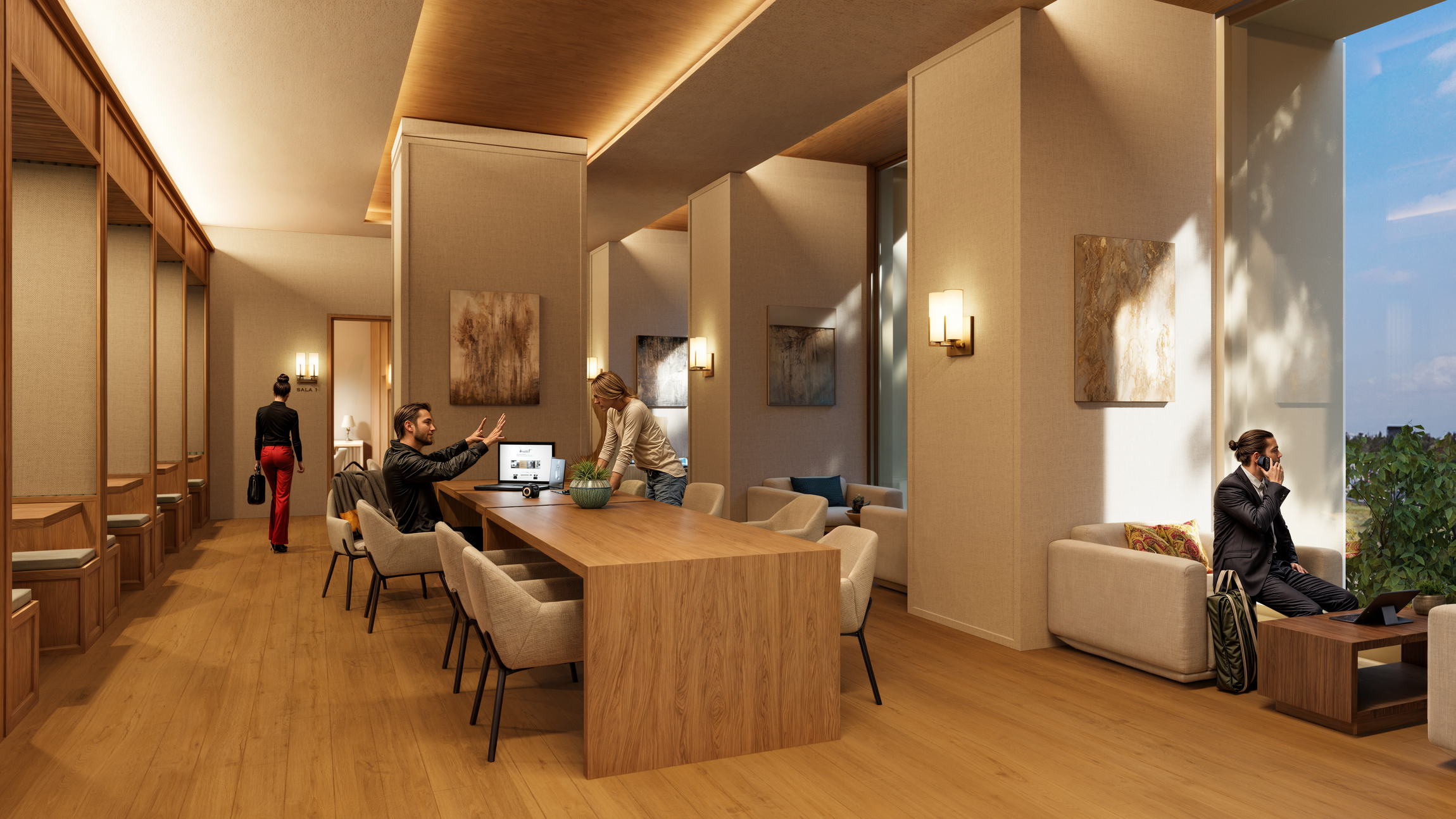 Amenities are vertically distributed throughout the tower, inspired by the historic University Club typology of New York, where leisure, wellness, and social spaces are integrated into the urban fabric of the building. Levels 36 to 38 are dedicated to resident amenities, including lounges, fitness areas, and social venues. Levels 39 and 40 house mechanical and utility services, and level 41 crowns the structure with a rooftop heliport.
