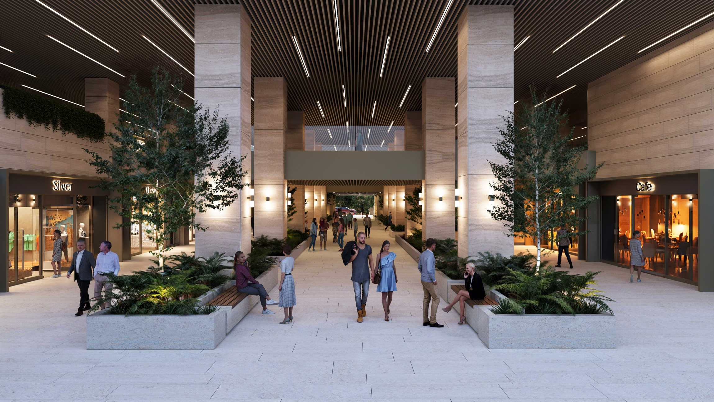 The façade expresses a deliberate material duality—contrasting the timeless solidity of stone with the sleek transparency of glass. The stone, a warm travertine marble, evokes texture, memory, and permanence, while the glass represents clarity, lightness, and modernity. Together, they merge the language of early vertical architecture with a contemporary and forward-looking aesthetic.
