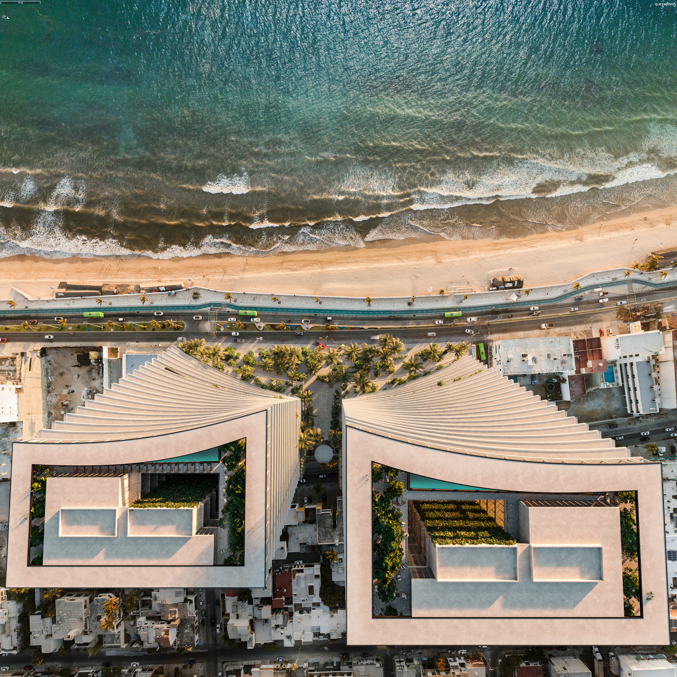 Most mixed-use developments in Mexico follow a closed-gate model—introverted, disconnected from the urban fabric, with inactive street fronts, oversized parking podiums, and retail spaces designed without true regard for user experience. In contrast, our site offered a unique opportunity: an urban setting with oceanfront exposure. This allowed us to rethink the relationship between private development and public life by proposing a hybrid space—one that would elevate the project’s value while giving something meaningful back to the city.